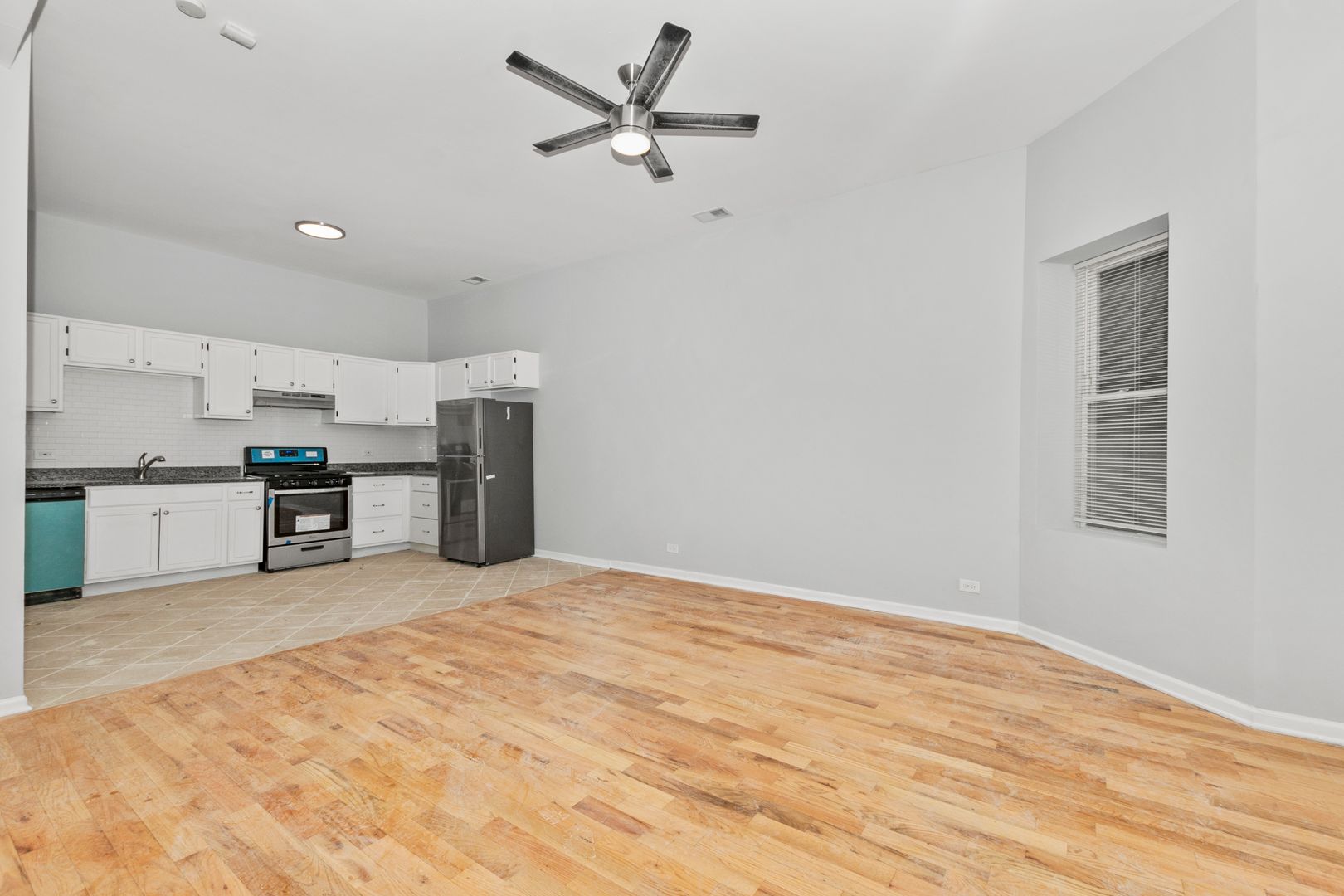 Spacious 5 bed/2 bath condo featuring a brand-new kitchen with stainless steel appliances, granite countertops, and bright white cabinetry. The unit offers a mix of wood-like vinyl, ceramic, and hardwood flooring throughout, adding a modern touch. Section 8 welcome!