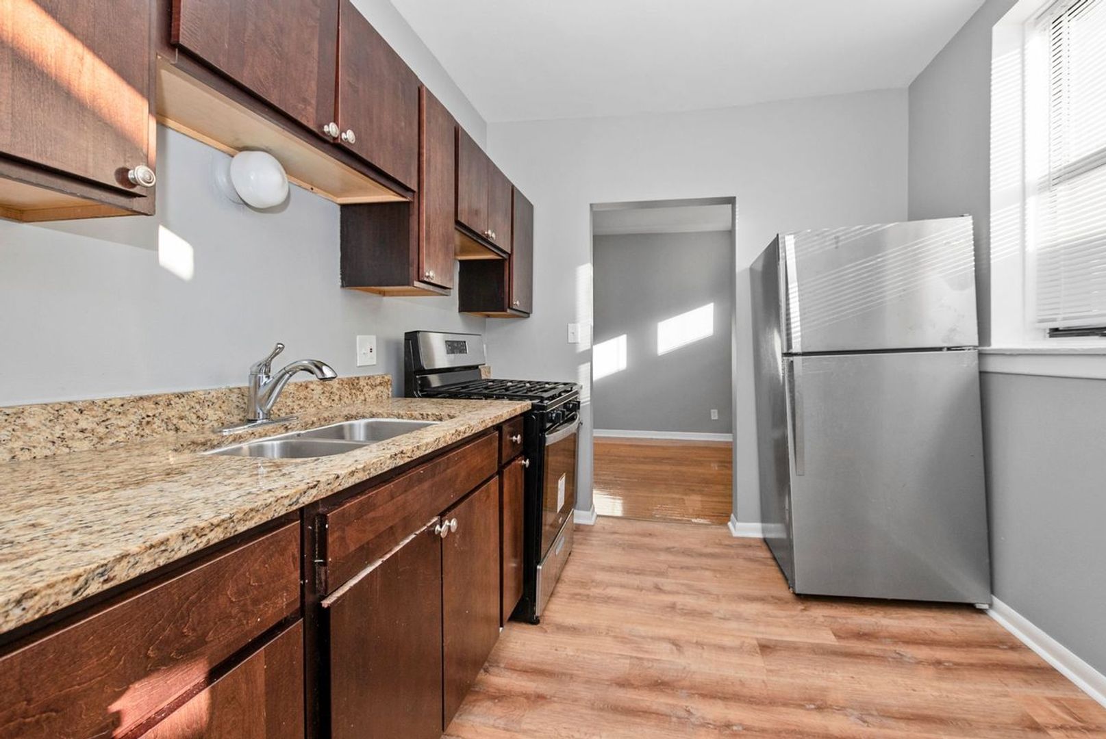 Kitchen features granite countertops and newer dark cabinets. Great location just mins from Jackson Park and Lake Michigan. Section 8 welcome!